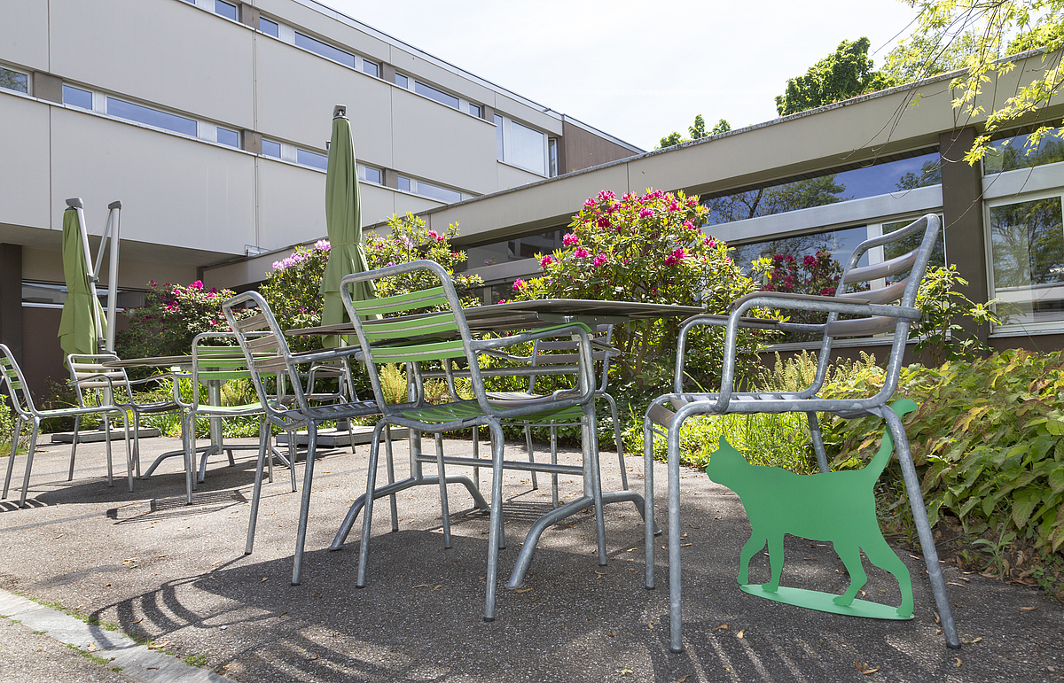 Hinweise zu Bild oben: Kater Urban auf der Terrasse des Restaurants Rossfeld, Bild: Lisa Schäublin