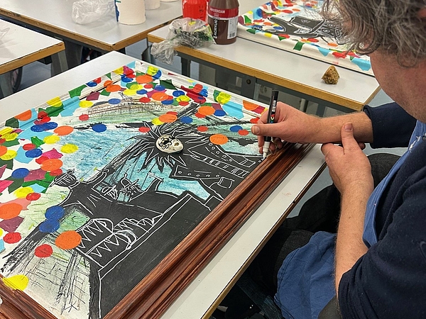 Künstler:innen der Tagesstruktur der Stiftung Rossfeld machen sich jedes Jahr Gedanken zum Thema Fasnacht. Die Kunstwerke werden in Bern ausgestellt und sind für einen guten Zweck erhältlich.