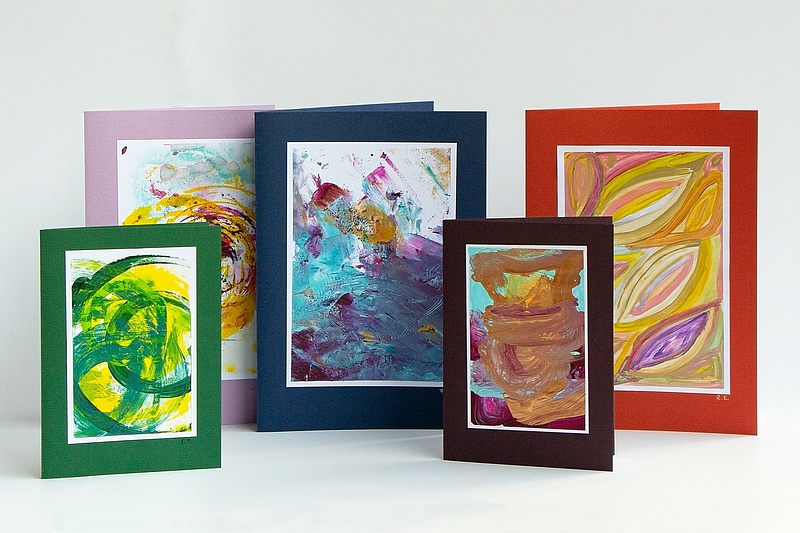 Sie finden bei uns ein grosses Sortiment an farbenfrohen Kunst-Karten für verschiedene Anlässe! Jede einzelne davon ist ein Unikat.
