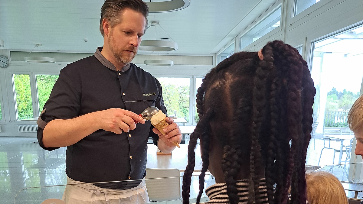 Im Restaurant Rossfeld war das Glace Velo ein Highlight - nicht nur bei den Kindern. Vor allem die Jubiläumsglace «Heidelbeer-Jogurt» war sehr beliebt.