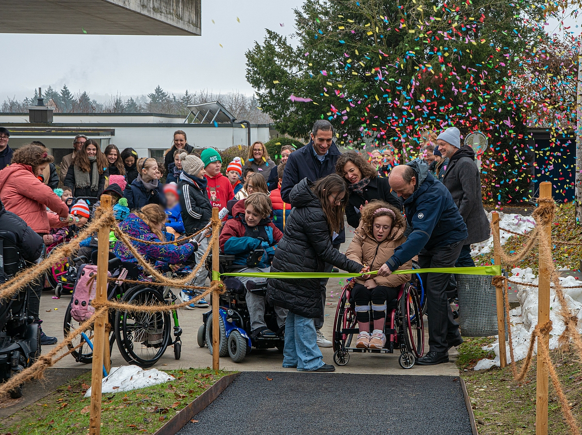 Die rollstuhlgängige Verbindung zwischen den beiden Schulen wurde am 29. November 2024 mit Rossfeld-Schüler:innen im Beisein von Michael Aebersold, Direktor für Finanzen, Personal und Informatik (FPI) der Stadt Bern, Stiftungsratspräsident Giorgio Albisetti und Direktorin Giovanna Battagliero feierlich eingeweiht.