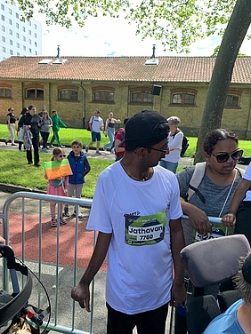 Zu Fuss, im Elektro- und Handrollstuhl und am Rollator haben 10 Klient:innen die 1,6 km lange «Einstiegsmeile» erfolgreich bezwungen.